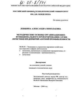 Предметом исследования является процесс организационно-функционального проектирования служб логистики предприятий азотной промышленности; основные бизнес-процессы логистической деятельности и организационно-экономические отношения в предпринимательской деятельности химических предприятий.