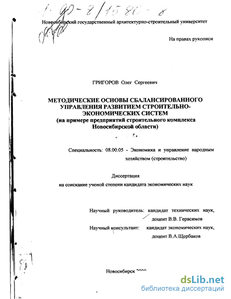 - разработка методических основ сбалансированного управления экономическим развитием строительной деятельности.