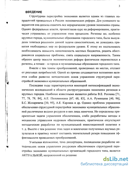 Учитывая изложенное, тема диссертации, посвященная разработке методических основ управления ресурсным обеспечением структурной перестройки экономики муниципальных организаций городского типа, является АКТУАЛЬНОЙ, направленной на решение важных экономических задач.