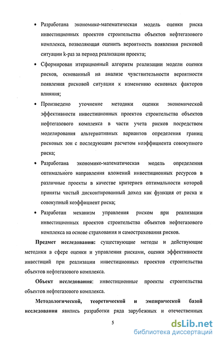 Предмет исследования: существующие методы и действующие методики в сфере оценки и управления рисками, оценки эффективности инвестиций при реализации инвестиционных проектов строительства объектов нефтегазового комплекса.