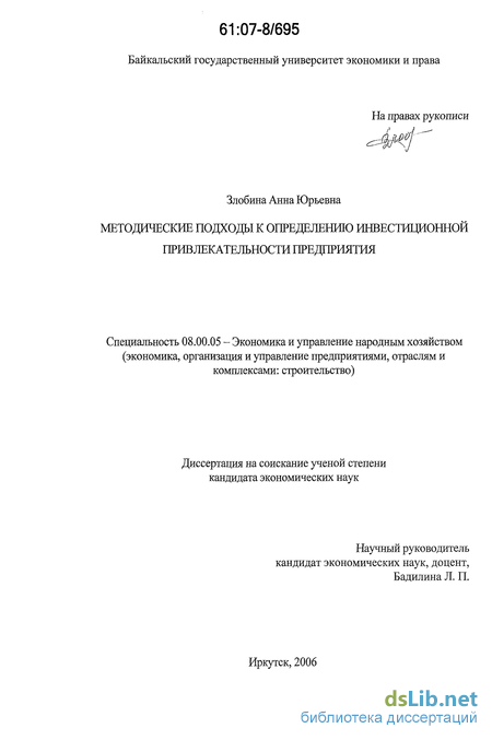 Степень обоснованности научных положений, выводов и рекомендаций, содержащихся в диссертации. Теоретическая и методологическая основа диссертационной работы заключается в использовании системного подхода, методов сравнительного анализа и синтеза, статистических методов обработки информации, а также результатов теоретических и практических исследований, проведенных отечественными и зарубежными авторами по проблемам определения инвестиционной привлекательности предприятия, оценки эффективности инвестиционной деятельности, финансовому менеджменту, управления стоимостью предприятия, а так же по анализу эффективности финансово-хозяйственной деятельности предприятия.
