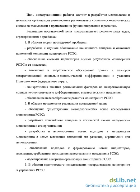 Цель диссертационной работы состоит в разработке методологии и механизма организации мониторинга региональных социально-экономических систем во взаимосвязи с процессами их функционирования и развития.
