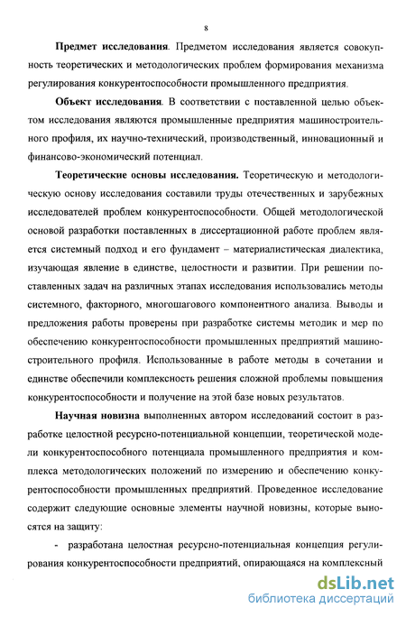 Предмет исследования. Предметом исследования является совокупность теоретических и методологических проблем формирования механизма регулирования конкурентоспособности промышленного предприятия.