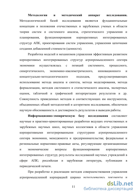 Начавшиеся в 1990-х гг. интеграционные процессы в АПК привели к образованию крупных объединений сельскохозяйственных, перерабатывающих и торговых организаций, обеспечивающих полный технологический цикл производства сельскохозяйственной продукции. В тоже время переход от административных методов управления, которые отличались жестким лимитированием, ограничением свобод и полномочий структурных подразделений, потребовал адаптации систем управления корпоративными интегрированными структурами (КИС) к новым экономическим условиям. Это обусловило появление нового круга задач для экономической науки в области управления, в т.ч. и необходимость разработки методологии управления развитием КИС АПК в условиях изменяющихся рыночных отношений.