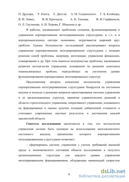 Степень разработанности проблемы. Различные аспекты интеграции в агропромышленном секторе экономики исследовались несколькими поколениями ученых. Базовые основы проблем формирования и развития КИС заложены в работах Н.Д. Кондратьева, А.В. Чаянова, А.Н. Челинцева, И. Ансоффа, М.И. Кулагина, В.И. Ленина, В.Е. Мотылева, Ю.В. Иванова, М.С. Ильина, А.Г. Тихонова, И.А. Храбровой и др.