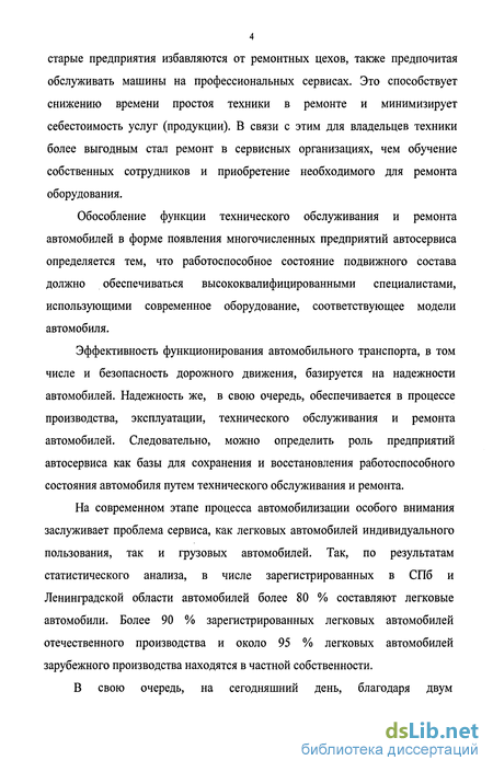 На современном этапе процесса автомобилизации особого внимания заслуживает проблема сервиса, как легковых автомобилей индивидуального пользования, так и грузовых автомобилей. Так, по результатам статистического анализа, в числе зарегистрированных в СПб и Ленинградской области автомобилей более 80 % составляют легковые автомобили. Более 90 % зарегистрированных легковых автомобилей отечественного производства и около 95 % легковых автомобилей зарубежного производства находятся в частной собственности.