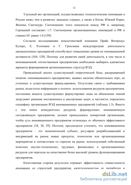 В ходе исследования понятия организационной структуры ВЭД инновационного предприятия было выяснено, что существующие определения касаются только понятия организационной структуры предприятия и организационной структуры инновационного предприятия, а понятие «организационная структура ВЭД применительно к инновационному предприятию» отсутствует [14, 29, 31, 35, 84] (таблица1.4).