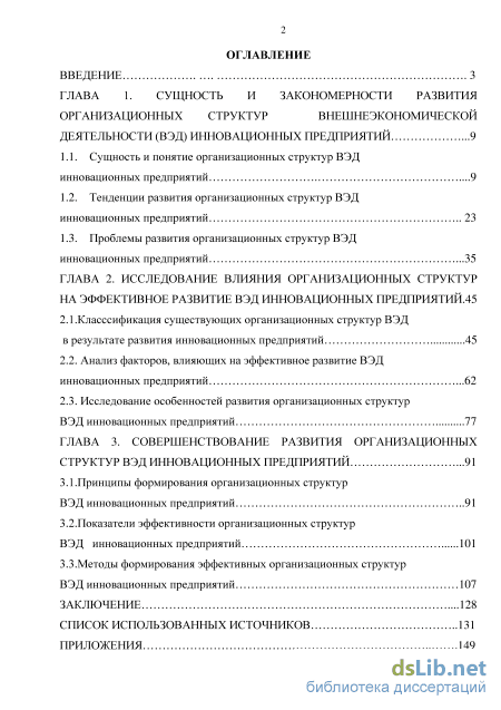 ГЛАВА 2. Исследование влияния организационных структур на эффективное развитие вэд инновационных предприятий .45