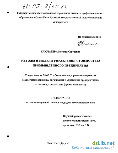 Объектом исследования является промышленное предприятие. Предметом исследования являются методы и модели управления стоимостью промышленного предприятия.
