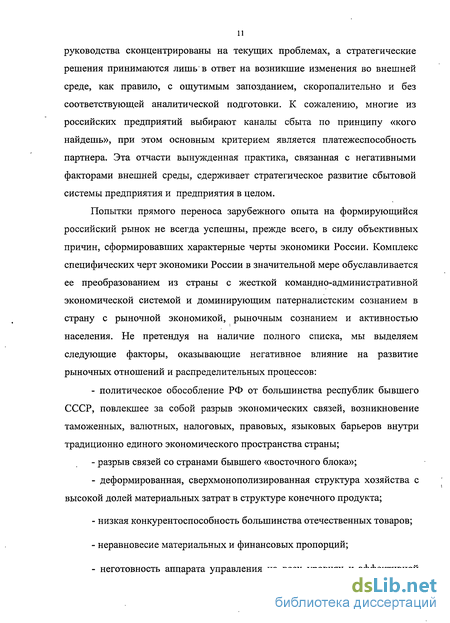 1.1. Анализ состояния и проблем организации сбыта продукции