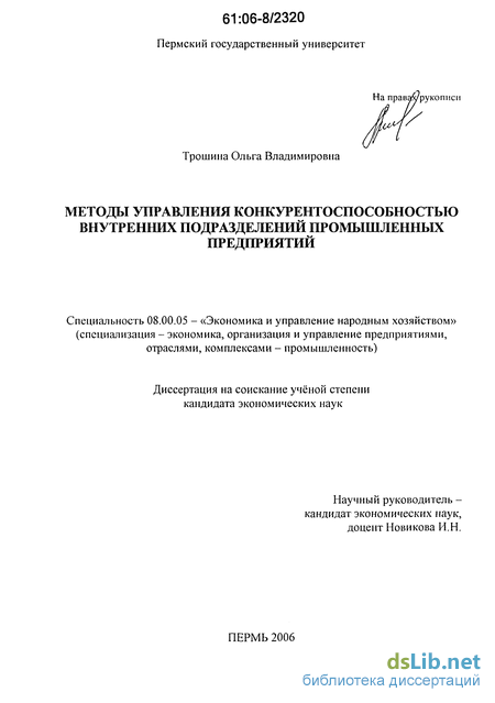 Предметом исследования являются управленческие отношения, регулирующие конкурентоспособность подразделений на внутренних рынках промышленных предприятий.