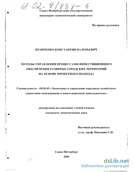 - Методы управления процессами инвестиционного обеспечения развития городских территорий