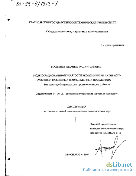 1.4. Северные промышленные поселения как объект моделирования рациональной занятости CLASS ГЛАВА 2 Особенности регулирования занятости и движения экономически активного населения норильского промышленного района 53 CLASS