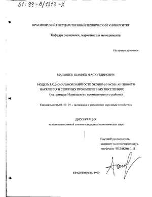 Тем самым существенно расширен предмет исследования в сравнении с аналогичными исследованиями проблем занятости населений в районах Крайнего Севера.