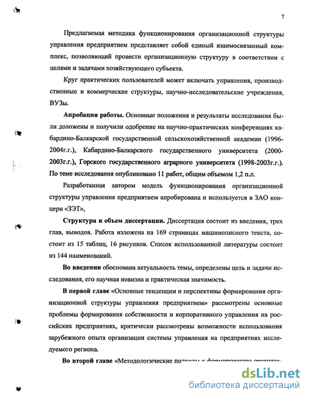 Предметом исследования являются теоретические и методологические проблемы совершенствования систем управления и проектирования их организационных структур.