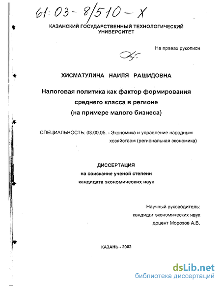 В связи с этим представляет значительный интерес изучение экономических основ, источников, факторов, закономерностей и региональных особенностей успешного становления среднего класса, степени влияния региональной налоговой политики на формирование и развитие малого бизнеса в России. Все вышеизложенное, а также необходимость разработки комплексной экономически обоснованной программы действий по увеличению численности представителей среднего класса обусловливают актуальность выбранной темы диссертационной работы.