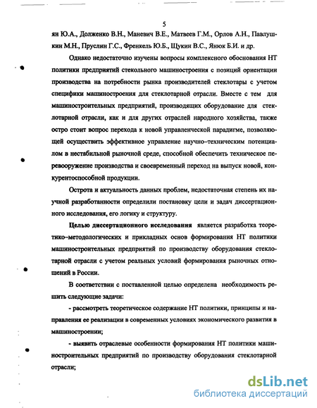Целью диссертационного исследования является разработка теоретико-методологических и прикладных основ формирования НТ политики машиностроительных предприятий по производству оборудования стеклотарной отрасли с учетом реальных условий формирования рыночных отношений в России.