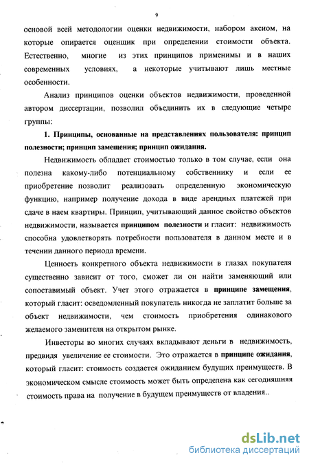 - уточнение содержательной части основных понятий и категорий, присущих современному российскому рынку недвижимости, принципов и целей оценки недвижимости;