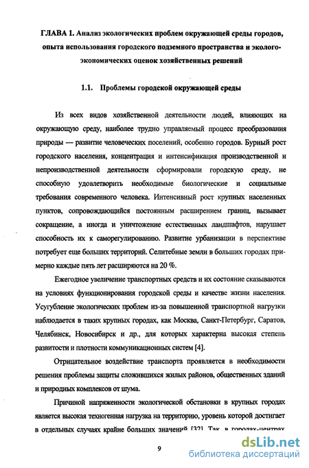 ГЛАВА 1. Анализ экологических проблем окружающей среды городов, опыта использования городского подземного пространства и эколого-экономических оценок хозяйственных решений