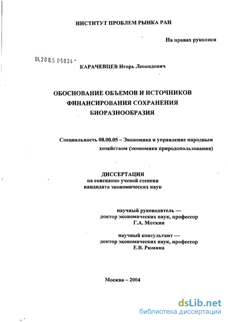 > сква, 2003 г.). Полученные результаты использованы при выполнении проекта РГНФ № 03-02-00084а «Анализ и развитие финансовых механизмов стратегии сохранения биоразнообразия», а также планов НИР Института проблем рынка РАН.