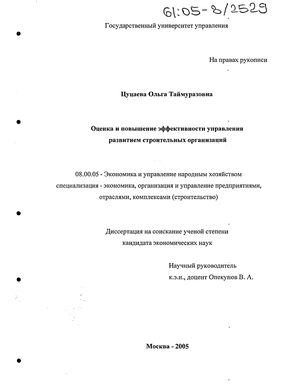 Цель диссертационной работы состоит в научном обосновании и разработке методических основ и методов управления развитием строительных организаций для современных условий рыночных отношений в сфере строительного бизнеса и состояния рынка строительных подрядов и услуг.
