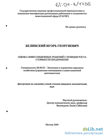 Однако, взаимосвязь, цепочка «рациональное инвестирование - рост стоимости компании» практически не раскрывается. Многие вопросы, связанные с разработкой методических аспектов принятия