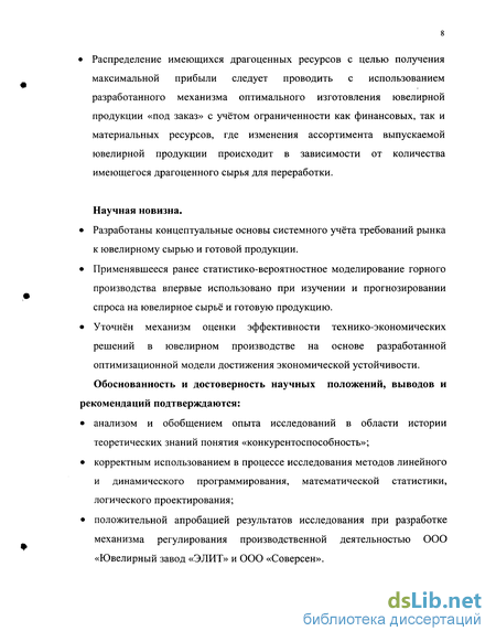 положительной апробацией результатов исследования при разработке механизма регулирования производственной деятельностью ООО «Ювелирный завод «ЭЛИТ» и ООО «Соверсен».