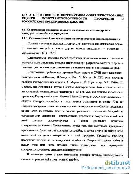Глава I. Состояние и перспективы совершенствования оценки конкурентоспособности продукции в российском предпринимательстве 9