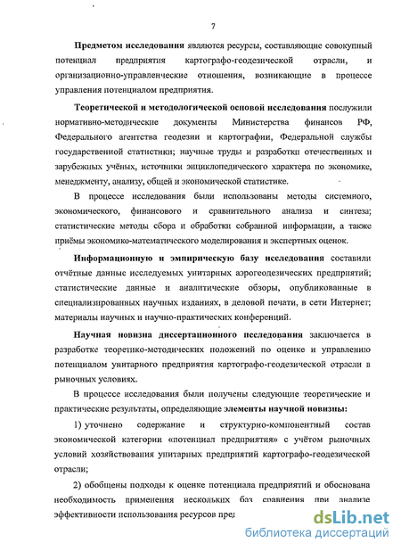 Научная новизна диссертационного исследования заключается в разработке теоретико-методических положений по оценке и управлению потенциалом унитарного предприятия картографо-геодезической отрасли в рыночных условиях.