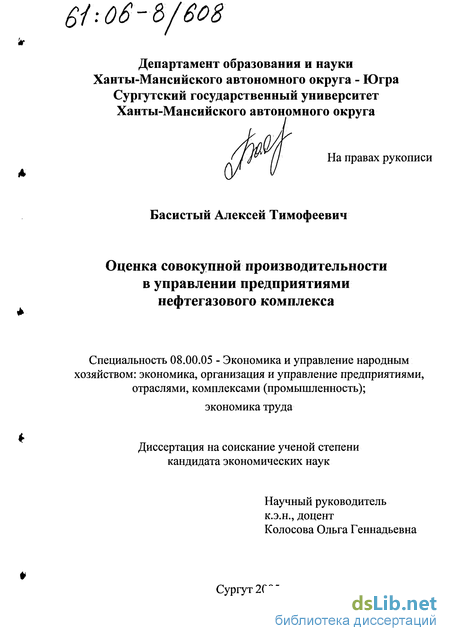 Актуальность и практическая значимость проблемы использования оценки совокупной производительности в управлении предприятиями нефтегазового комплекса предопределили выбор темы диссертационного исследования, его цель, предмет и задачи.