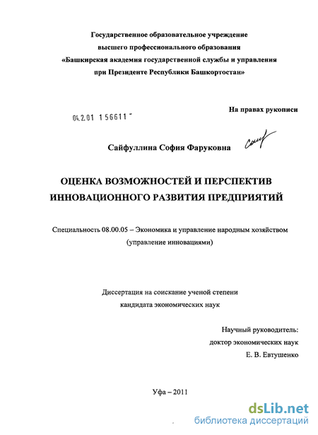 Предметом исследования является совокупность организационно-управленческих и экономических отношений, возникающих при оценке возможностей и перспектив инновационного развития предприятия.