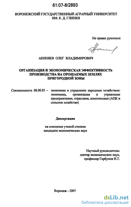 Объектом исследования являются хозяйства пригородной зоны г Воронежа Углубленное исследование организации производства в орошаемом зем-