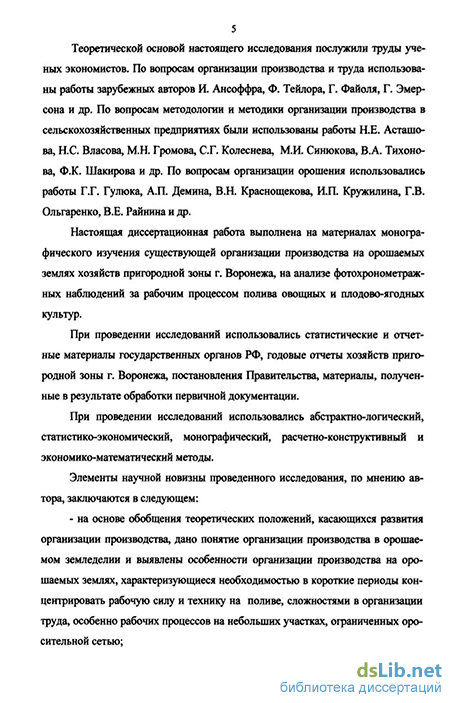 Теоретико-методологическая основа и методическая база исследования. Теоретической основой настоящего исследования послужили труды ученых экономистов По вопросам организации производства и труда использованы работы зарубежных авторов И Ансоффра, Ф. Тейлора, Г. Файоля, Г. Эмерсона и др По вопросам методологии и методики организации производства в сельскохозяйственных предприятиях были использованы работы Н Е. Асташо-ва, Н С. Власова, М.Н. Громова, С.Г. Колеснева, М.И Синюкова, В А. Тихонова, Ф.К Шакирова и др. По вопросам организации орошения использовались работы Г.Г. Гулюка, А.П. Демина, В.Н. Краснощекова, И П. Кружилина, Г.В. Ольгаренко, В Е. Райнина и др