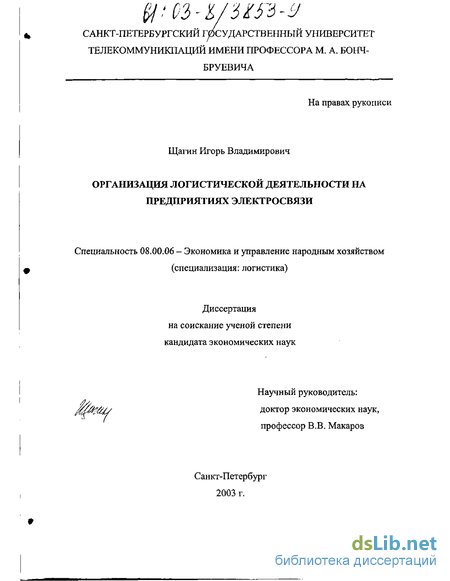 Все вышеизложенное определяет актуальность и востебованность выполненных в диссертации исследований в сфере организации логистической деятельности на предприятиях электросвязи.