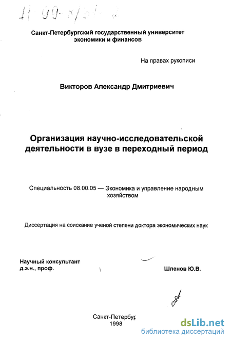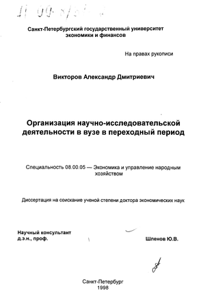 Актуальность темы исследований обусловлена необходимостью разработки методологии и теоретических основ организации научно-исследовательской деятельности в высших учебных заведениях в достаточно продолжительный по времени переходный период экономики страны.