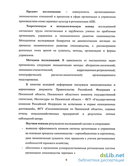 Однако в большинстве исследований проблема семеноводства рассматривается как аспект технико-технологический или экономический, при этом недостаточно уделяется внимание вопросам региональной организации, управления и регулирования. В этом плане данная диссертация по ряду направлений имеет поисковый характер.
