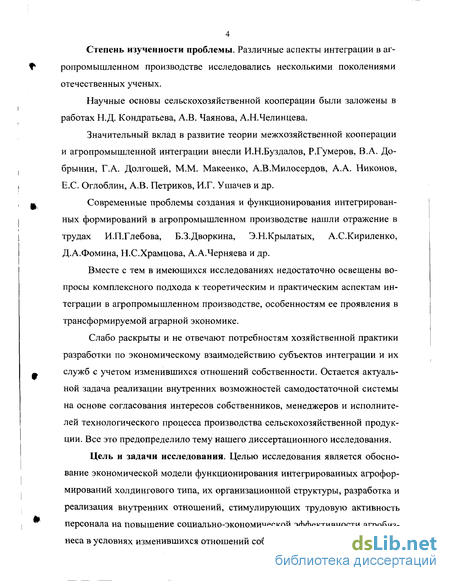 4 Степень изученности проблемы. Различные аспекты интеграции в агропромышленном производстве исследовались несколькими поколениями отечественных ученых.