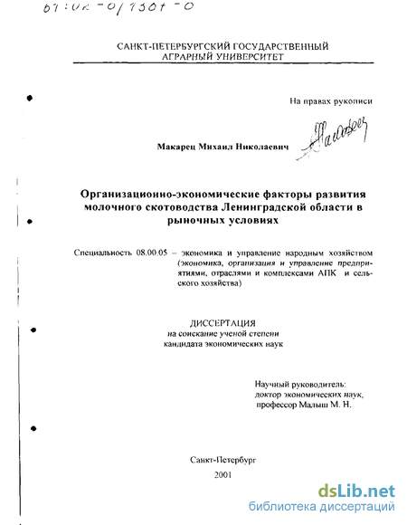 3. Организационно-экономические факторы развития молочного скотоводства ленинградской области в рыночных условиях 1 17