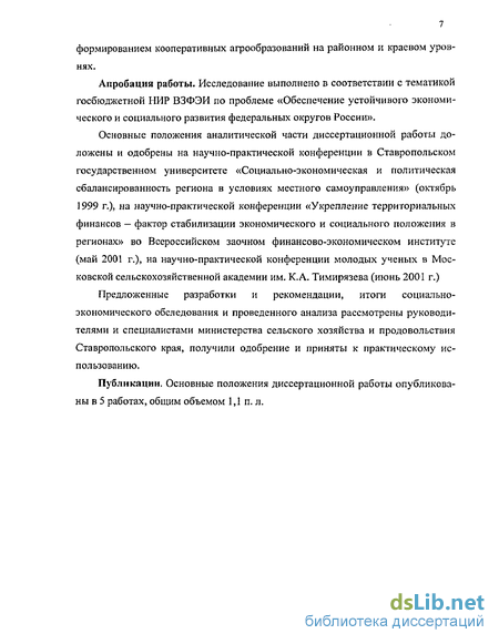 Апробация работы. Исследование выполнено в соответствии с тематикой госбюджетной НИР ВЗФЭИ по проблеме «Обеспечение устойчивого экономического и социального развития федеральных округов России».