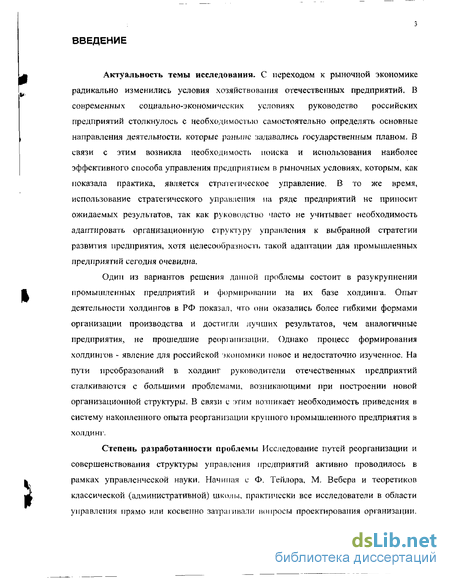 В отечественной управленческой науке вопросами совершенствования управления предприятием занимались такие ученые как А,Г. Аганбсгян, О.С. Виханский, Л.И. Евенко, Ю.Ю. Екатеринослапский, Ь.З. Мильнер, В.И. Некрасов, А.И. Наумов, Г.Х. Попов и многие другие. С началом экономических преобразований в России было издано несколько работ различных авторов по формированию структур управления организацией в рыночных условиях [Б.З. Мильнер, Т. Душанич, А.В. Игнатьева и др.]. Несмотря на обилие работ, посвященных данной проблематике, обращает на себя внимание недостаточная методическая разработанность вопросов реорганизации предприятия в холдинг.