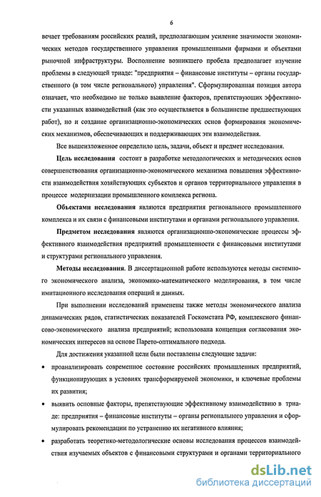 Объектами исследования являются предприятия регионального промышленного комплекса и их связи с финансовыми институтами и органами регионального управления.