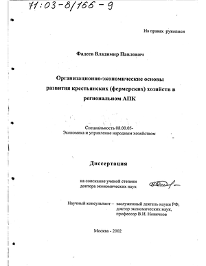 ложения, представленные и рассмотренные в АККОР Саратовской области, могут быть использованы в практической работе по организации и ведению крестьянских (фермерских) хозяйств, а также планировании и анализе подобной деятельности. Информационный материал диссертации может быть использован в средних и высших сельскохозяйственных учебных заведениях при подготовке экономистов, фермеров и других специалистов.