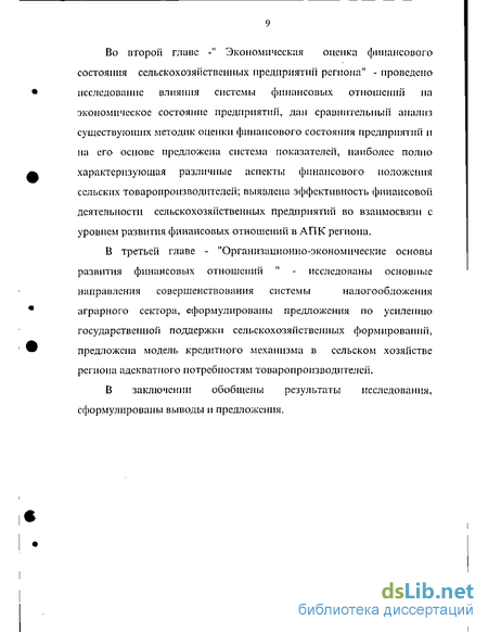 Логика реализации поставленной цели предусматривает решение ел еду ю щ и х з ада ч: раскрыть сущность системы финансовых отношений в сельском хозяйстве и выявить объективную необходимость их совершенствования в переходный период к рыночной экономике; исследовать в теоретическом аспекте особенности становления и развития механизма финансовых отношений в условиях реформирования аграрной сферы экономики; разработать методические подходы к оценке сложившегося финансового состояния в сельскохозяйственных формированиях; выявить специфику функционирования системы финансовых отношении в сельскохозяйственном производстве региона; обосновать предложения по поводу комплекса организационно-экономических мер, необходимых для регулирования и развития финансовых отношений в переходной экономике. Предметом исследования явилась система финансовых отношений в сельскохозяйственном производстве региона с целью • теоретического осмысления и выработки соответствующих рекомендаций по ее дальнейшему развитию в условиях многоукладной экономики. Объектом исследования послужил механизм регулирования » финансовых отношений в аграрной сфере региона при переходе к рынку. Углубленные исследования проводились на материалах Ставропольского края - одного из крупных регионов Российской Федерации. Теоретическую и методологическую базу исследования составили работы российских и зарубежных экономистов, нормативные акты, характеризующие и регламентирующие процессы • становления и функционирования рынка в аграрном секторе как на федеральном, так и региональном уровне. При этом использовались ™ методологические подходы, обусловленные многовариантностью и многофакторностью развития аграрної! экономики. Источниками информации послужили материалы официальной статистической отчетности Госкомстата Российской Федерации и статистического управления Ставропольского края, данные годовых отчетов сельскохозяйственных предприятий края, материалы научных и научно-практических конференций по исследуемой проблеме, результаты анкетирования. I Для решения поставленных в работе задач использовались следующие методы: монографический, экономико-статистический, абстрактно-логический, социологический. Научная новизна результатов исследования заключается в следующем: уточнены методические подходы к определению содержания и структуры механизма финансовых отношении в сельском хозяйстве с учетом его реформирования на рыночной основе; разработаны методические положения комплексной оценки финансового состояния сельскохозяйственных предприятии в условиях становления новых организационно-правовых форм хозяйствования; определен комплекс мер по стимулированию системы налогообложения в сельскохозяйственном производстве, предполагающий как структурные и уровневые изменения налогов в отрасли, так и принципы и методы обоснования наиболее важных элементов налоговой системы; предложен механизм совершенствования форм финансовой поддержки сельских товаропроизводителей со стороны государства применительно к условиям переходного периода к рынку; разработана модель формирования кредитного механизма в сфере агропромышленного производства, адекватно отражающая новые экономические отношения. Практическая значимость иссл