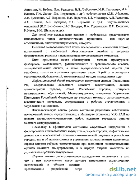 Следовательно, сама дискуссионность проблематики имущественных отношений, отсутствие целостной концепции развития имущественного комплекса на различных территориальных уровнях, фрагментарность понятийно-категорийного аппарата, высокая практическая значимость проблем управления имущественным комплексом в системе факторов экономического роста городов определили объект и предмет исследования, обусловили выбор темы, цели и задач диссертационной работы.