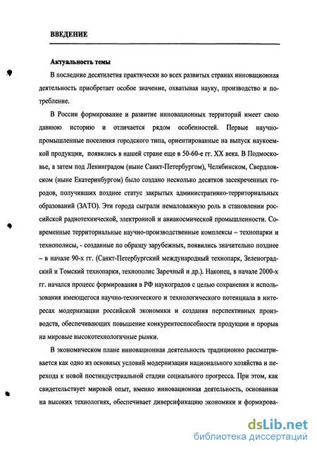 Все вышесказанное позволяет сделать вывод об актуальности поиска новых подходов к совершенствованию организационно-экономического механизма формирования территорий инновационного развития. Это и обусловило выбор темы данного исследования.