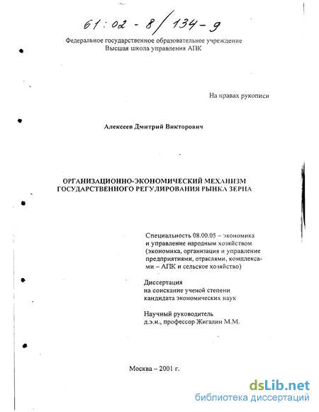 Таким образом, актуальность работы определяется острой потребностью в совершенствовании государственного регулирования зернового рынка и необходимостью разработки соответствующей методической базы, информационного и правового обеспечения.