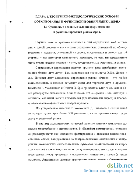 Сущность и основные условия формирования и функционирования рынка зерна 8