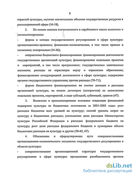 Обоснованы и сформулированы пути совершенствования организационно-экономического механизма государственного регулирования в области культуры: