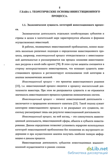 Глава 1. Теоретические основы инвестицион ного процесса . 8