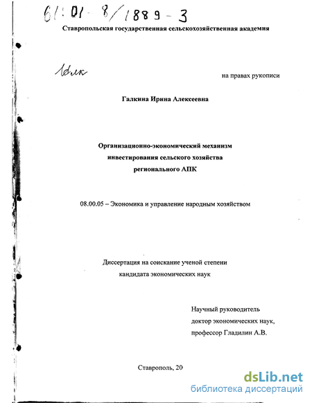 Объектом исследования послужили сельскохозяйственные предприятия различных форм собственности, участвующие в инвестиционной деятельности, а изучение явлений на мезо- и микроуровнях проводится в условиях Ставропольского края.